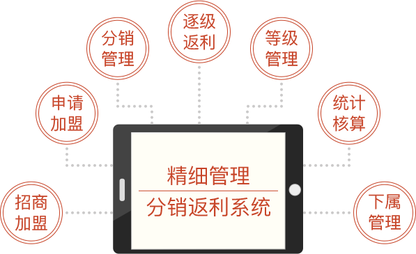 系统优势:以最低的成本快速拥有网络分销能力,高效解决招商、营销、分销以及下属等的管理问题,并且设立多级分销商差异进货体系、逐级分销商返利抽成体系。